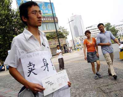 四川大一新生胸前挂“卖身契”街头筹学费