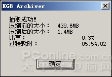 可以看到KGB在大文件的压缩率上面的确是比WinRAR更加优胜,能够为你的硬盘再度节省空间。不过却要牺牲大量的时间在压缩和解压缩上面。