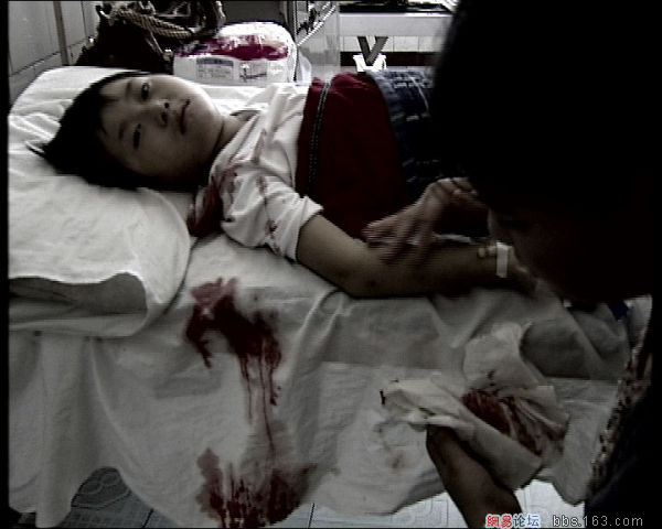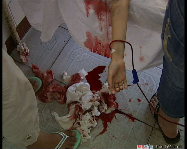 床单、枕头已经别小慧吐出的血染红了