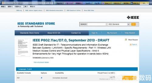 在Wi-Fi的这份编年史中,没有所为的几代之分,而是在需求的推动下,产生了一个又一个标准。最新的Wi-Fi标准是802.11AC标准,到现在已经到Draft7.0版本: