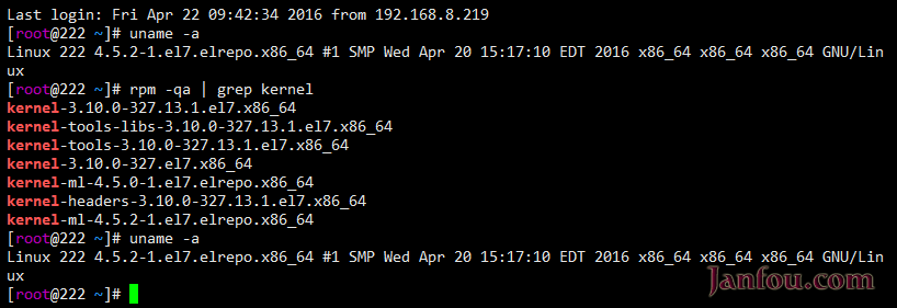最后,重启机器并应用最新内核,接着运行下面的命令检查最新内核版本: