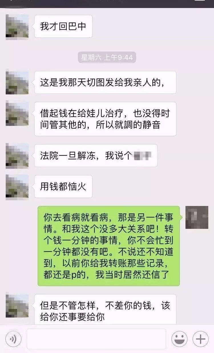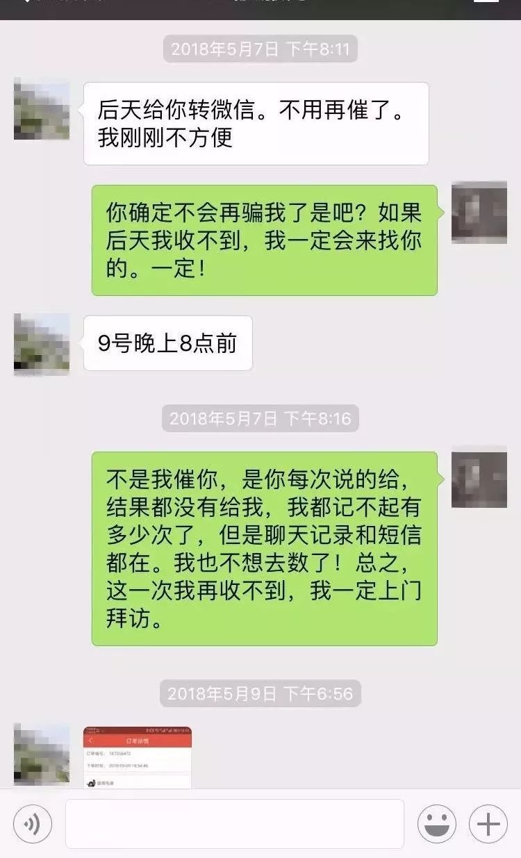 但是,一聊到自己欠钱的事情在网上曝光,唐胜改口了,希望叶华提供同学的电话号码,要求对方删除信息,不然吃官司。但是叶华的同学一直没有回复。