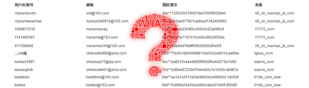 你的QQ密码、邮箱密码、服务器密码、微博密码、微信密码等等,都是一样的,或者都是从接触互联网就在用的密码,这很恐怖,在你漫长的互联网使用过程中,你可能注册了很多站点的会员,在长期使用过程中,你的密码可能早已泄露,说不定你到某工库一查,发现你所有在用的密码都在上面
