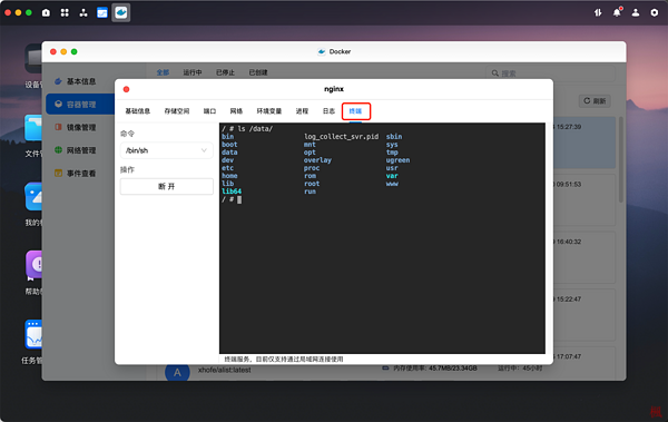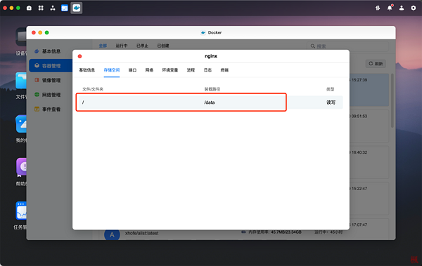 创建完成后,返回绿联云,刷新并查看详情,可以看到绿联系统的根目录已经挂载到容器内部