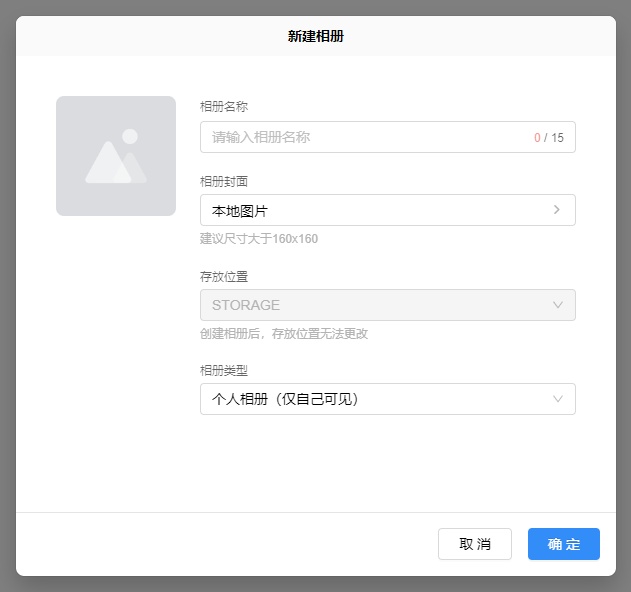 我必须从本机、存储空间、或者相册内部手动指定一张图片作为相册封面,在创建空相册时只能从本机照片指定,而不是根据相册内容自动创建封面