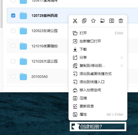我必须在相册 APP 里创建相册,与其它套件(说的就是你,文件管理)没有一丝一毫的联动