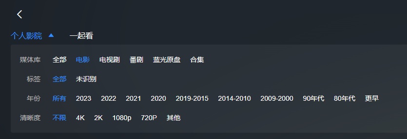 既然云影院能够添加公共空间的视频,那么从这个云影院是公共的这件事也就合乎常理了。但是阿绿再一次选择了打破常规:我教我老姐如何使用 APP 的时候,惊奇地发现她的云影院是空的。我找了半天去哪里将片库设为公用,发现满屏幕只有“个人影院”,把个人影院四个字点烂了也只是一个筛选器在疯狂地伸缩,最后发现所谓的公共影院的功能叫做“一起看”,还是邀请制的,你分享一个片库需要被分享人同意……
