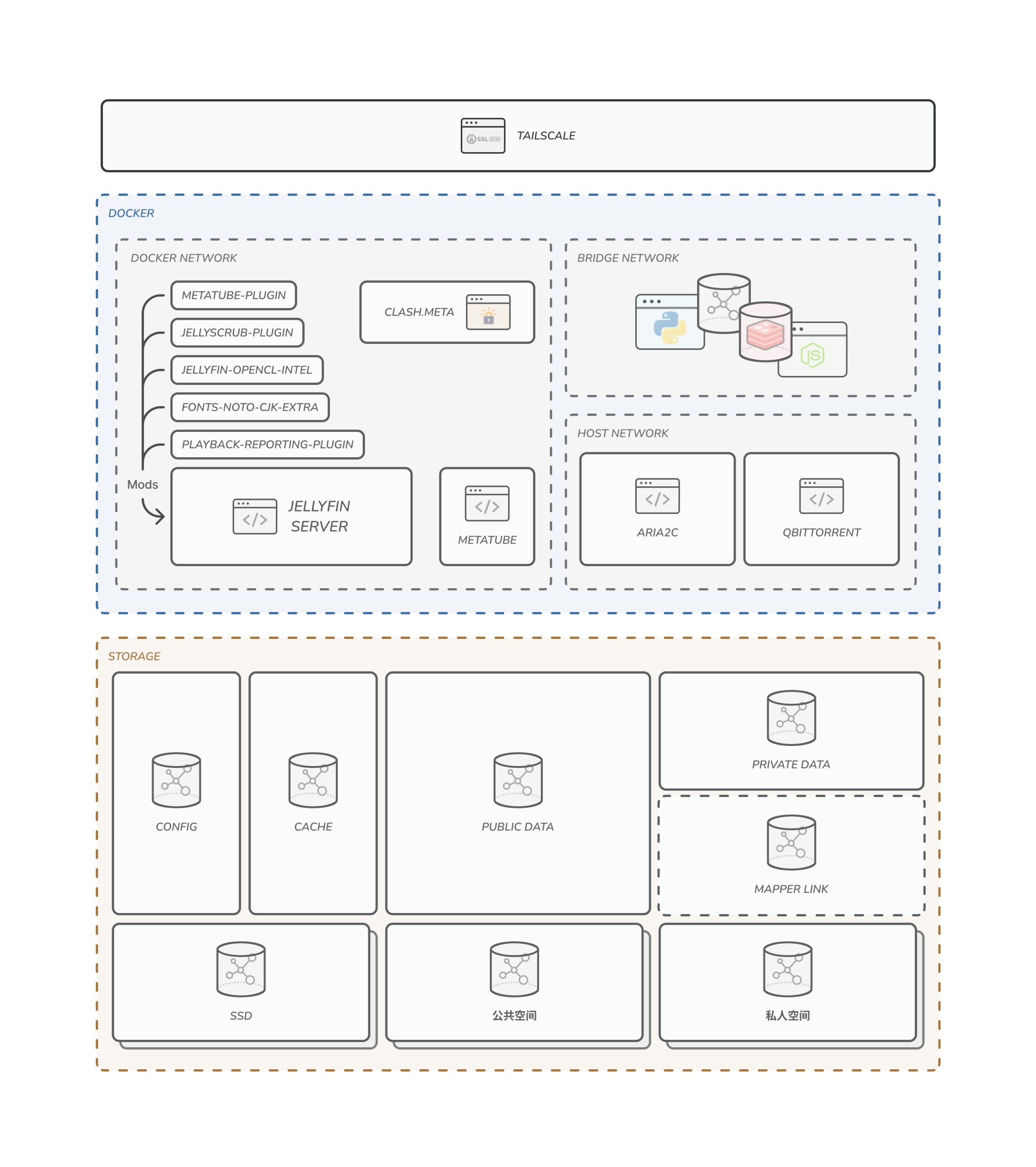 这篇教程将会使用大内网模式,即以 Tailscale 作为终端组网,其它所有想要访问 NAS 的用户都需要加入大内网。至于理由,我能够编出很多: