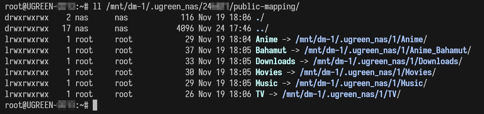 好在 docker 是一个遵守 Linux 规范的软件,所以在挂载 bind volume 时,允许通过软链接进行寻址。因此现阶段的解决方案是,在私人空间里单独腾出一个文件夹,创建你想要访问公共空间地址的软链接: