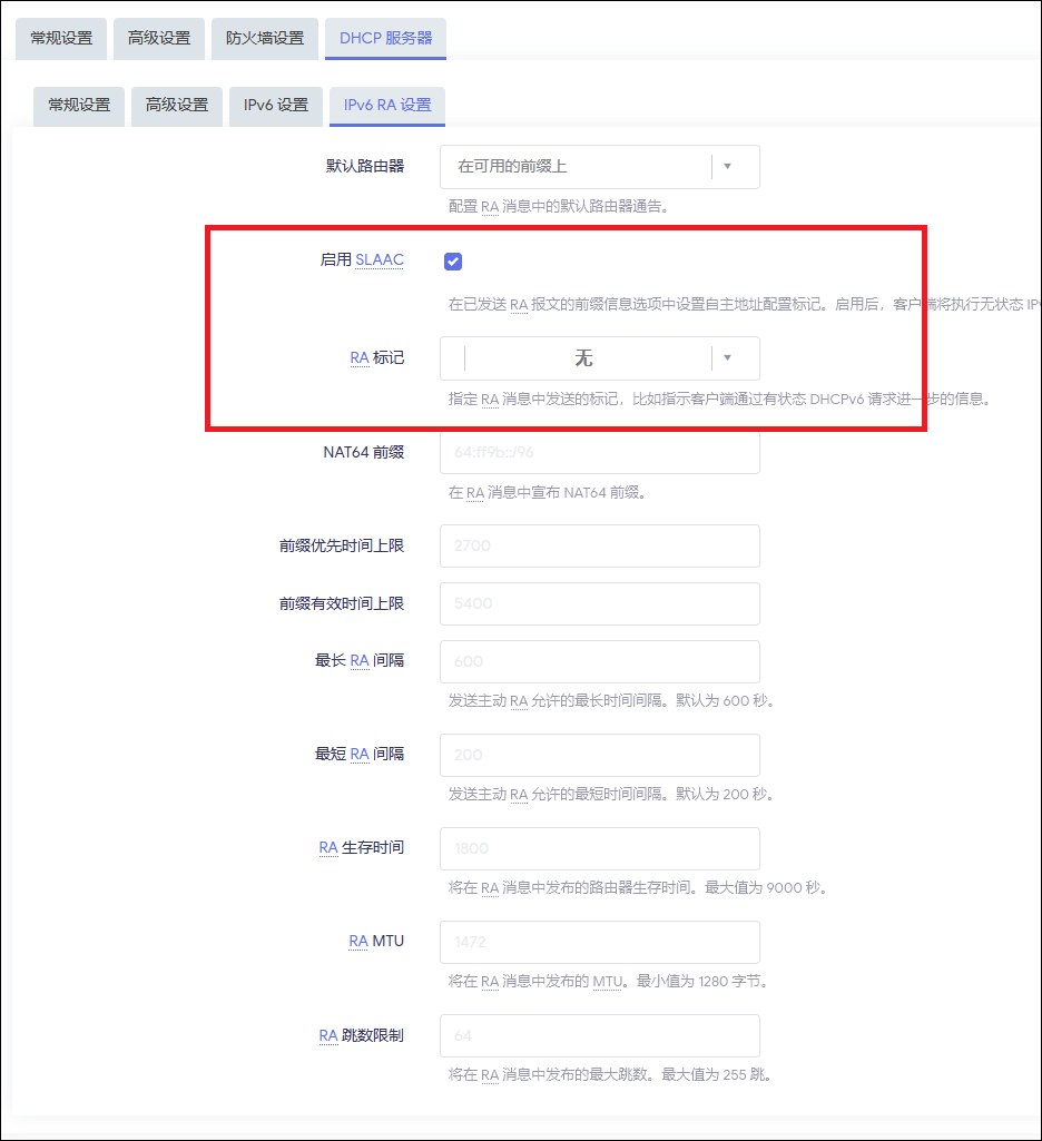 这里参考了如下设置:immortalwrt/user-FAQ/如何优雅的使用IPV6?
