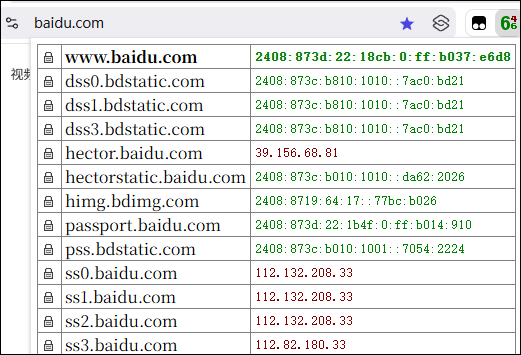 如果想了解当前访问的网页,使用的是 IPv4 还是 IPv6 线路,可以使用浏览器插件